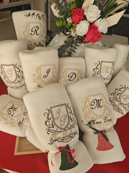 À l’EHPAD du Levant, la magie de Noël commence bien avant le 25 décembre ! Cette année, les résidents auront la joie de recevoir un cadeau unique et plein d’attention : un plaid personnalisé à leur nom.