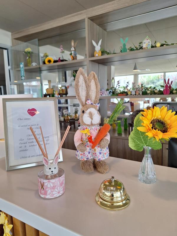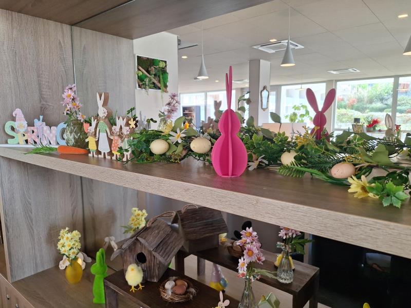 À l’approche des festivités de Pâques, la Résidence du Levant s’est parée de ses plus belles couleurs printanières. Depuis quelques jours, l’accueil de l’établissement se transforme peu à peu grâce à une jolie décoration réalisée avec soin.