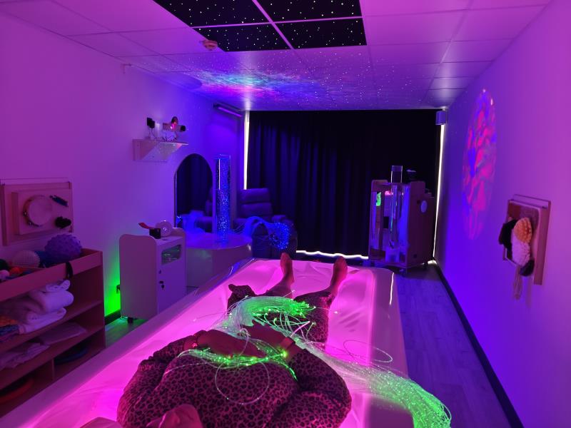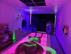Aménagée avec soin et équipée par la société Somoba, cette salle offre une expérience unique grâce à un matelas de flottaison, un fauteuil cocoon, des fils en fibres lumineuses, des colonnes à bulles, un projecteur d’ambiance et une musique douce et relaxante. Une véritable invitation à la sérénité, où tous les sens sont sollicités dans une atmosphère apaisante et bienveillante.